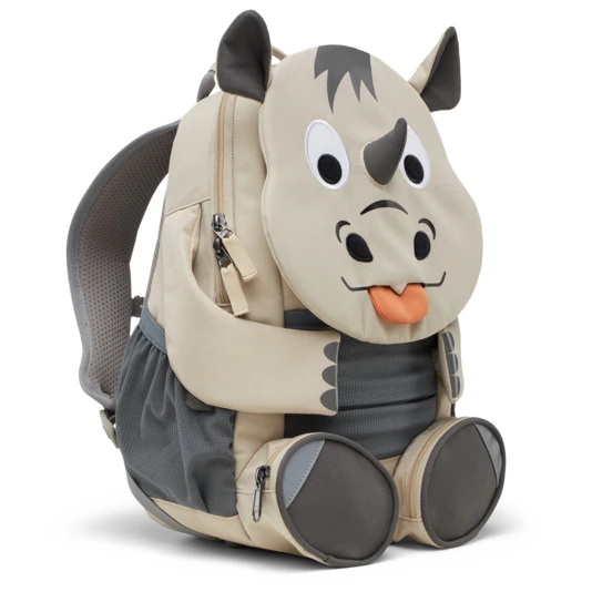 Neben dem 8 Liter großen Hauptfach bietet der Bauchbeutel des Nashorns sowie die zwei kleinen Taschen an den Hinterhufen zusätzlichen Platz für Kleinigkeiten. An den Seiten sind außerdem elastische Netztaschen, in denen z.B. Trinkflaschen aufbewahrt werden können. Die Vorderhufen des Nashorns sind zudem mit einem Klett versehen und können an verschiedenen Klett-Punkten angebracht werden. Damit macht das Tragen doch gleich doppelt so viel Spaß! Auf dem Heimweg sorgen dann die reflektierenden Details für eine bessere Sichtbarkeit im Dunkeln. Der Kid’s Großer Freund Nashorn Rucksack lässt einfach keine Wünsche offen!