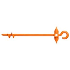 Bei diesem Zelthering handelt es sich um einen stabilen und zähen Bodenanker mit Gewinde. Er eignet sich optimal für sandigen und lockeren Boden. Er ist mit einer Öse ausgestattet, in die man Seile oder einen Hebel zum Eindrehen befestigen kann. Außerdem hat er einen Haken für die Zeltbefestigung.