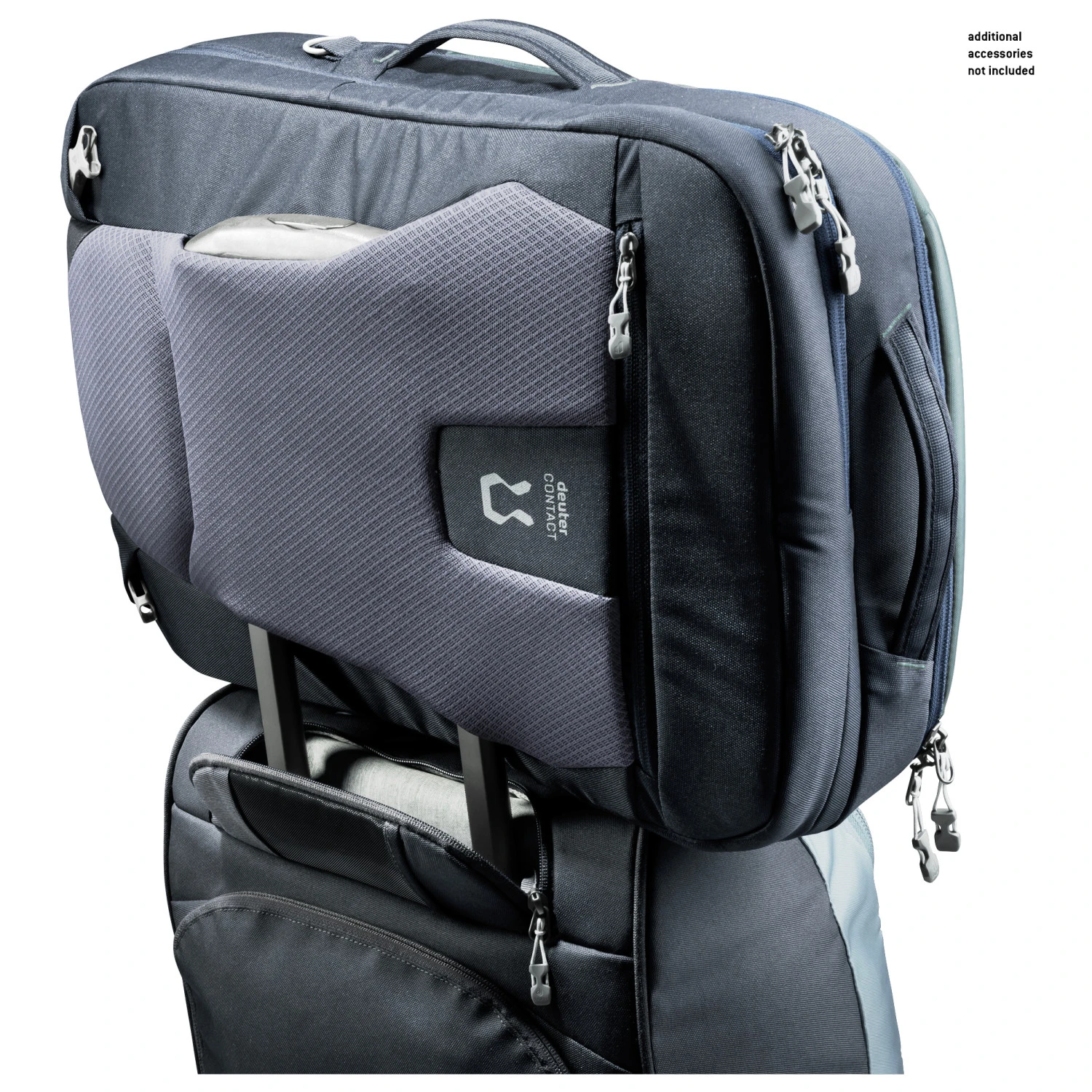 Der AViANT Carry On Pro 36 Reiserucksack von Deuter eignet sich optimal für Business-Trips, Städtereisen und Kurzurlaube. Er bietet 36 Liter Stauraum, die sich mit der intelligenten Aufteilung perfekt organisieren lassen und ist immer noch so kompakt, dass er bei den meisten Fluglinien als Handgepäck mitgeführt werden darf. Der bluesign zertifizierte Reiserucksack ist mit einem verstaubaren Schultergurt ausgestattet und verfügt über zwei gepolsterte Tragegriffe. Für zusätzlichen Halt sorgt ein justierbarer und abnehmbarer Brustgurt. An der Rückseite des AViANT Carry On Pro 36 hat Deuter einen „Tunnel“ eingearbeitet. So kann der Reiserucksack auf der Oberseite von Trolleys sicher befestigt werden.