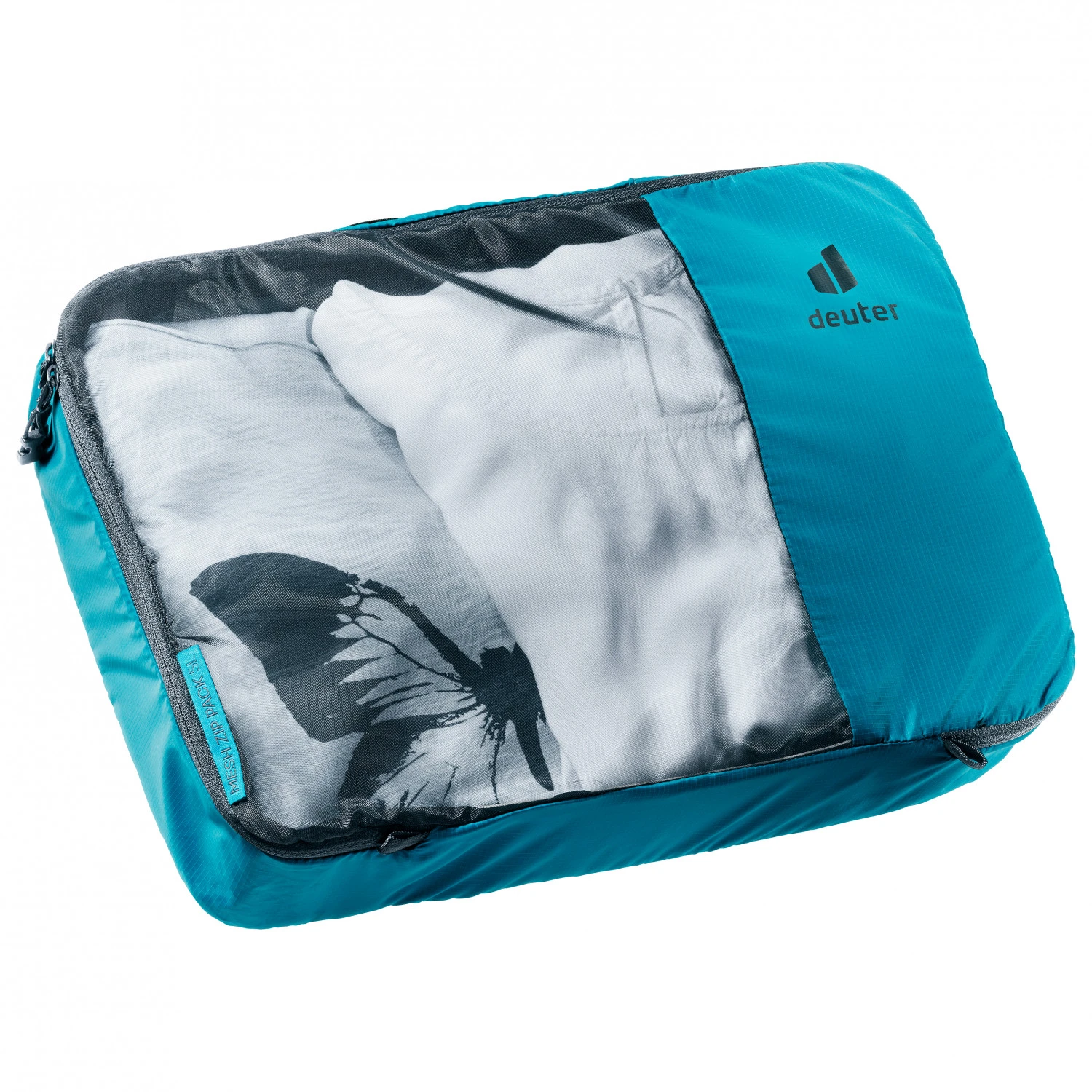 Der Mesh Zip Pack 5 von Deuter kommt im rechteckigen Format und ermöglicht so ein ordentliches Packen innerhalb des großen Reise-Gepäcks. Unangenehmes Suchen wird dem Reisenden durch zwei wichtige Eigenschaften des Beutels erspart. Zum einen verfügt er über ein durchsichtiges Material, das schon von außen ersichtlich macht, was sich im Beutel befindet. Zum anderen lässt sich der Beutel komplett aufklappen und erleichtert so einen schnellen Zugriff zum Inhalt des Packsacks. Um den Sack einfach transportieren und auch aufhängen zu können, ist ein robuster Griff angebracht.