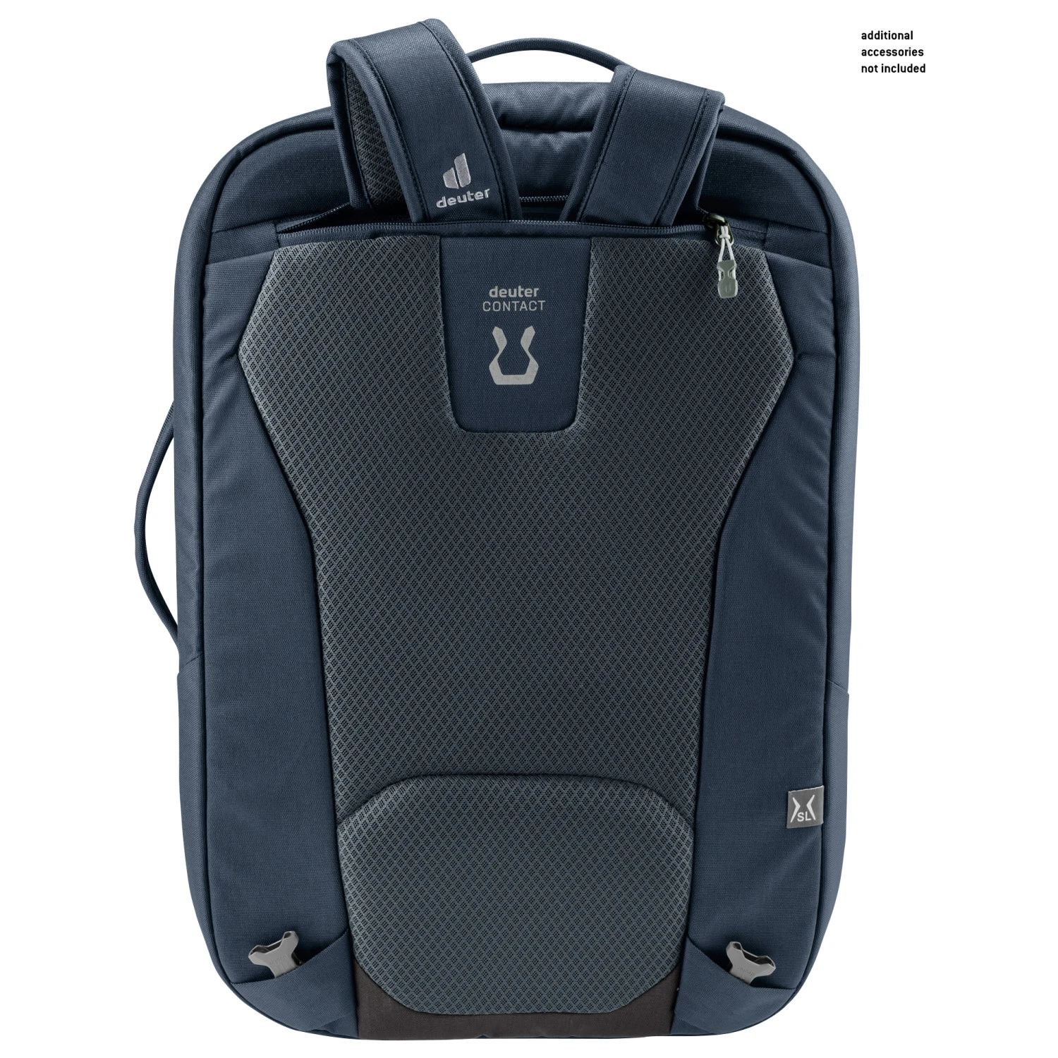Im Women’s AViANT Carry On 28 SL Reiserucksack von Deuter befindet sich ein gepolstertes Laptopfach, ein separates Tabletfach und ein Organizer-Fach. Das Kleidungsfach ist mit einer Netzabdeckung von restlichen Hauptfach abgetrennt. Wie ein Koffer lässt sich der Women’s AViANT Carry On 28 SL bequem aufklappen. Im Gegensatz zum Trolley oder Reisekoffer verfügt der Deuter Rucksack allerdings über gepolsterte Schulterträger. Die können bei Bedarf komplett verstaut werden und der Rucksack lässt sich dann mit seinen Tragegriffen noch immer bestens transportieren. Ein separates Frontfach mit Reißverschluss und eine Schlüsselclip ergänzen den bluesign zertifizierten Business-Rucksack, der mit seinem Tragesystem speziell für Frauen konstruiert wird.