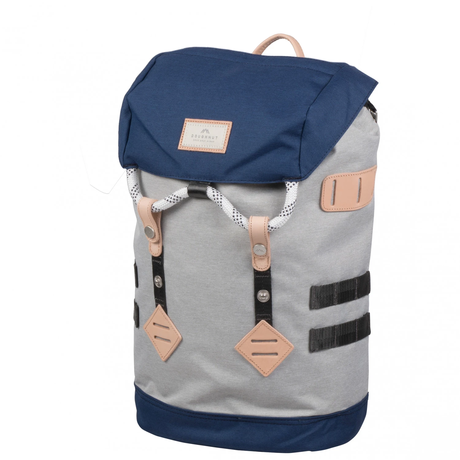 Mit seinem speziellen Verschlusssystem aus Seil und Lederschlaufen sticht der Colorado Small 15 von Doughnut besonders hervor. Der hübsche Rucksack bietet 15 Liter Volumen und ist mit praktischen Fächern und einem gut gepolsterten Tragesystem ausgestattet. So trägt sich der hübsche Rucksack sehr komfortabel im Alltag, in der Freizeit und auf dem Weg zur Uni oder zum Büro.