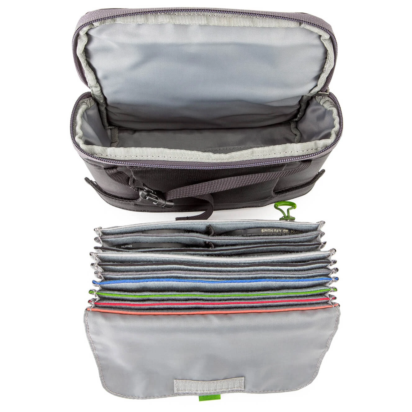 Das Mindshift Filter Hive Foto-Zubehör ist ein spezielles Täschchen zum Einsatz in die Hüfttasche oder den Rucksack. In den gepolsterten Schubfächern bringt man bis zu sechs Fotofilter unter. Sie sind staubgeschützt und bekommen keine Kratzer durch das weiche Innenfutter. Die RV-Tasche hält anderes Zubehör sicher bewahrt fern von den empfindlichen Filtern.Auf der Suche nach einer praktischen Tasche für die sichere Aufbewahrung von Filtern? Das Mindshift Filter Hive Foto-Zubehör ist nicht mehr und nicht weniger als perfekt dafür geeignet!