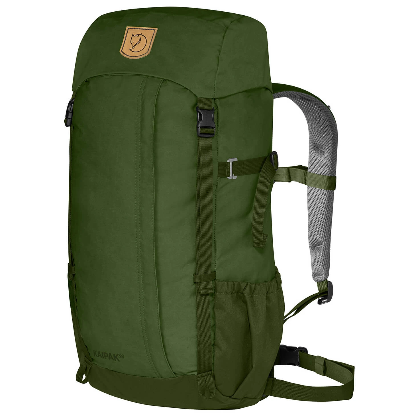 Für wahre Naturfreunde – der Kaipak 28 von Fjällräven. Der leichte und praktische Rucksack eignet sich nicht nur bestens für Ausflüge in die Natur, er trägt auch zu ihrer Erhaltung bei. Der Tagesrucksack ist aus G-1000 Heavy Duty Eco, der umweltfreundlichen und äußerst stabilen Variante des Materialklassikers von Fjällräven gefertigt. Die Baumwolle ist biologisch angebaut, das Polyester recycelt! Der robuste Materialmix ist speziell für strapaziöse und materialbelastende Zwecke konzipiert. Er fürchtet daher weder schweres Gewicht noch dauerhaften Einsatz. Mit seiner Imprägnierung aus Grönlandwachs wirkt das Material wasserabweisend, das heißt Regentropfen und Schnee perlen direkt ab. So übersteht der Rucksack zumindest kurze Schauer, ohne zu durchnässen. Bei länger anhaltendem Regen schafft die integrierte Regenhülle Abhilfe. Der Kaipak 28 von Fjällräven kommt mit einem großen Hauptfach, einem Frontfach und zwei Stretchtaschen an den Seiten. Kompressionsgurte halten den Rucksack bei geringer Füllmenge in Form. Und Wanderstöcke lassen sich ganz einfach am Rucksack befestigen, wenn sie nicht gebraucht werden. Ob auf leichten Wanderungen oder Tagesausflügen – der Kaipak 28 von Fjällräven ist ein zuverlässiger Begleiter.