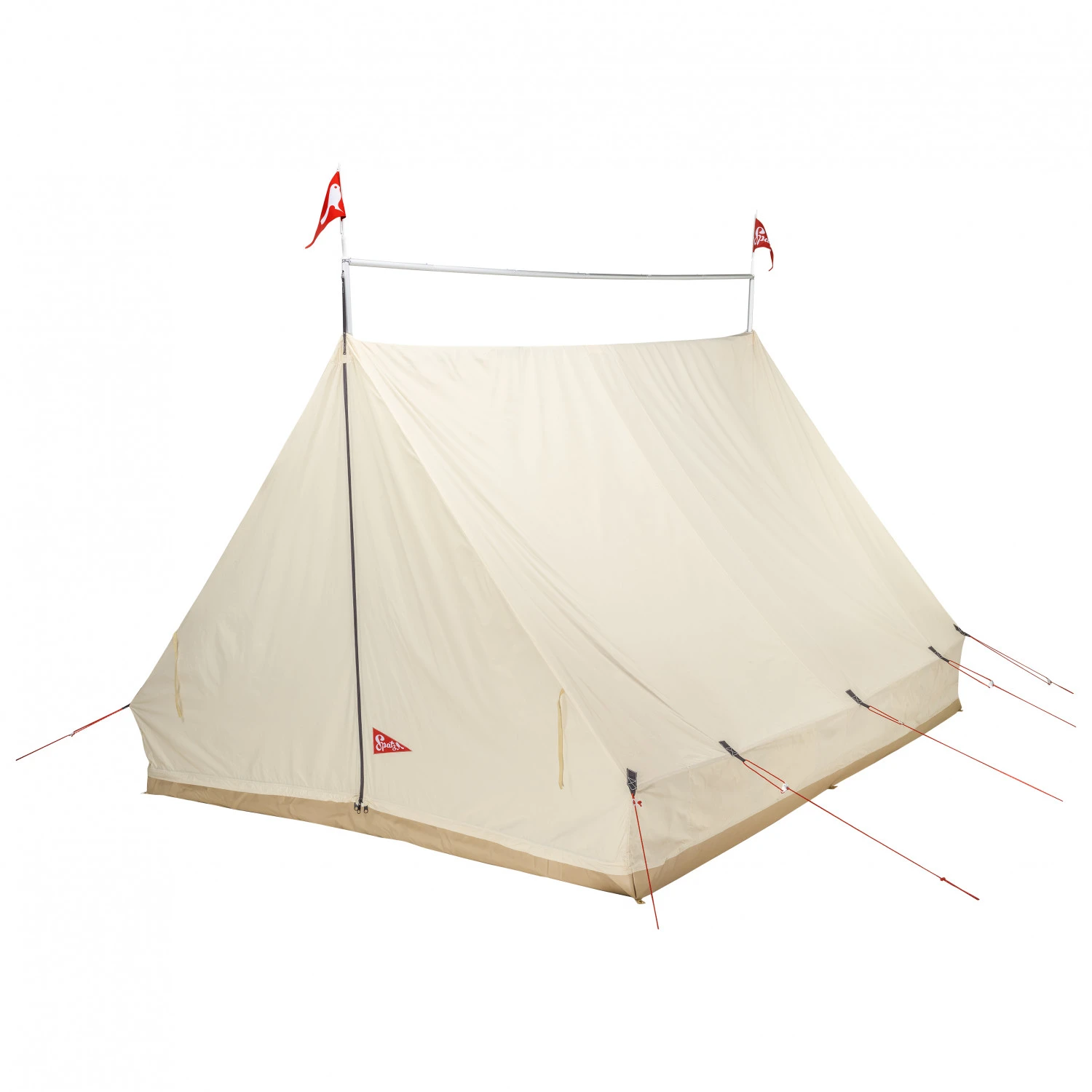 - Dank der Giebelkonstruktion kann das Zelt sicher gegen den Wind abgespannt werden