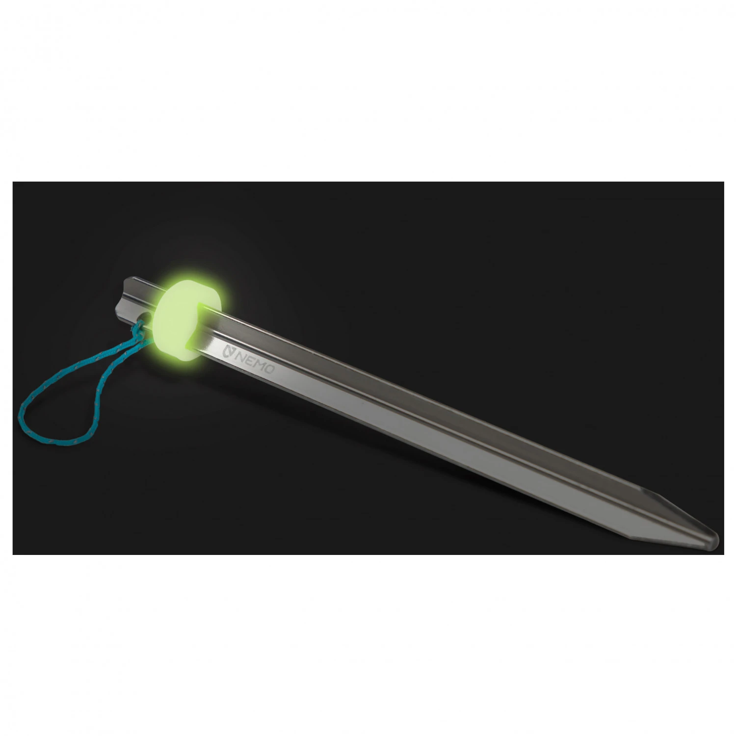 Die leichten Sweepstake Heringe von Nemo sind aus hochwertigem 7000 Aluminium gefertigt und bieten mit 18 cm Länge vielseitige Einsatzmöglichkeiten. Durch ihre spezielle Form und den integrierten Schaber, wird der Schmutz mit einer Handbewegung vom Hering entfernt, und der Dreck landet nicht im Rucksack oder in der Zelttasche.