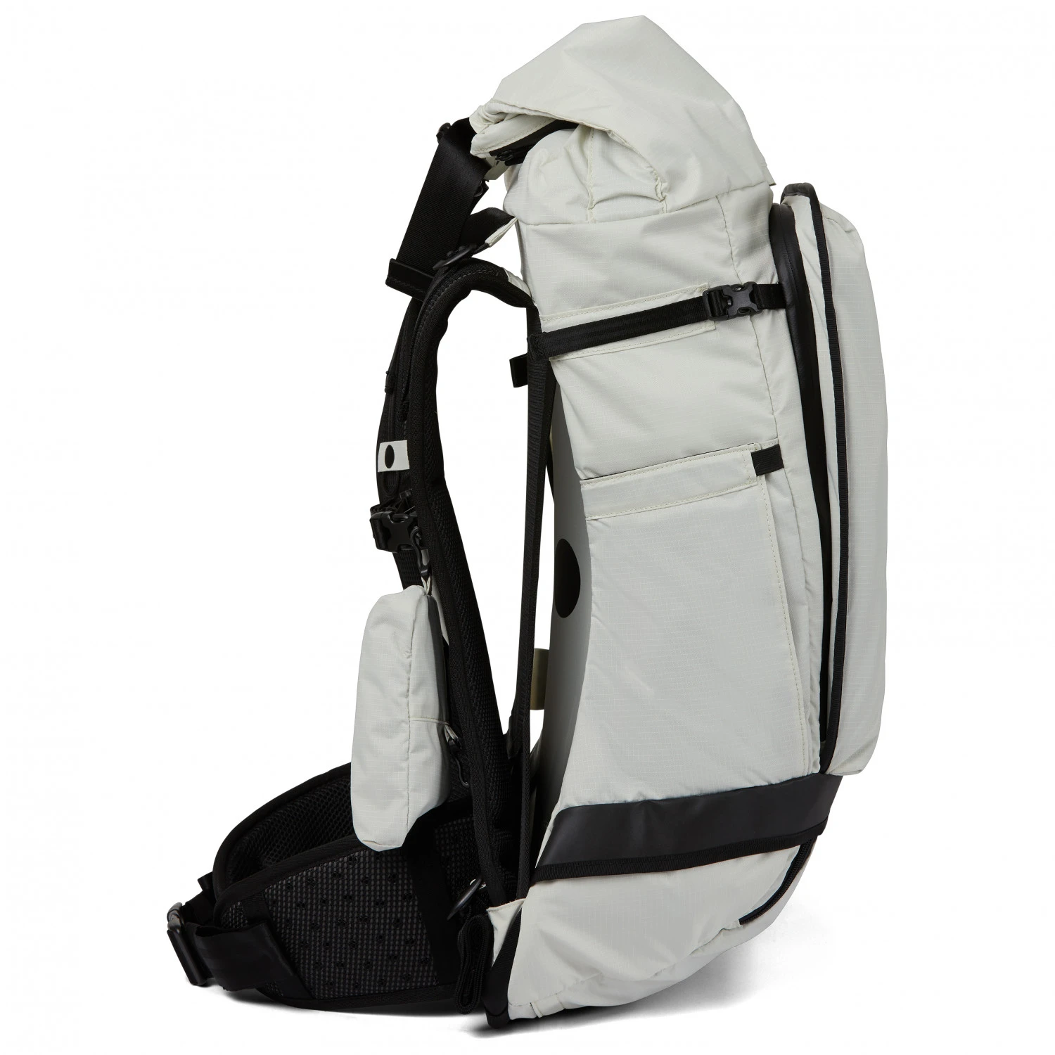 Ein weiteres Highlight des Rucksacks ist der Oberstoff, der aus pre-consumer recyceltem Nylon hergestellt ist. Es handelt sich dabei um reißfesten und strapazierfähigen Stoff. Er hat eine wasserbasierende PU-Beschichtung und ist mit einer PFC-freien, wasser- und schmutzabweisenden DWR-Imprägnierung ausgestattet. Außerdem ist das Innenfutter aus recycelten PET-Flaschen hergestellt.