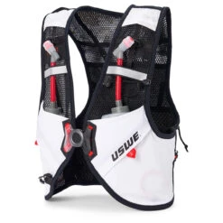 Der USWE Pace 8 Trailrunningrucksack ist mit Trinkblasen bis zu einem Volumen von 2 Litern kompatibel und wird mit zwei faltbaren Trinkflaschen geliefert. Durch das elastische NDM Vest Harness System lässt sich der Laufrucksack mit einem Druckknopf auf der Vorderseite verschließen. Seitliche Kompressionsriemen und das flexible Gewebe sorgen beim Laufen für eine präzise Passform.