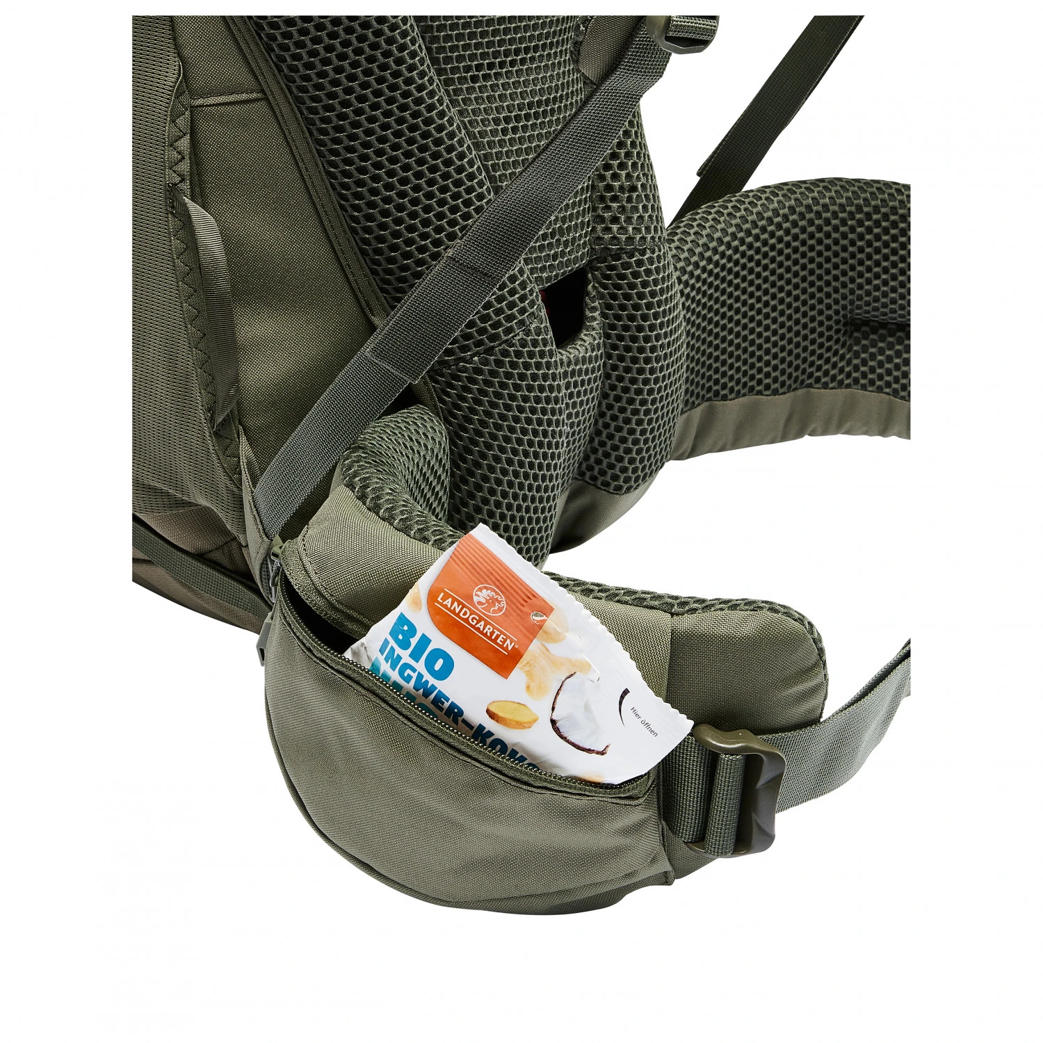 Das Material punktet mit Wetterschutz und Langlebigkeit. Stauraum bietet das geräumige Hauptfach, auf das Du vom Deckel und von der Front aus Zugriff hast. Zusätzliche Fächer an der Vorderseite, an der Seite und im Deckel optimieren den Stauraum. Deine Trekkingstöcke kannst Du sicher am Rucksack fixieren. Das rückenschonende Tragesystem ist besonders komfortabel. Dank Comfort Space wird der untere Rückenbereich vorteilhaft entlastet. Die ErgoShape Schultergurte passen sich optimal an die Anatomie an und erzeugen keine Druckstellen. Mit der optimalen Lastverteilung trägt sich der Rucksack besonders bequem. Ideal für Mehrtagestouren!