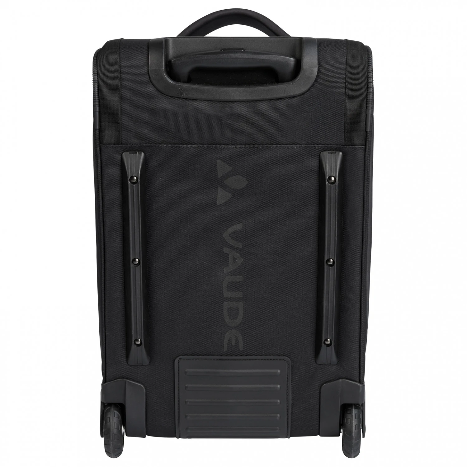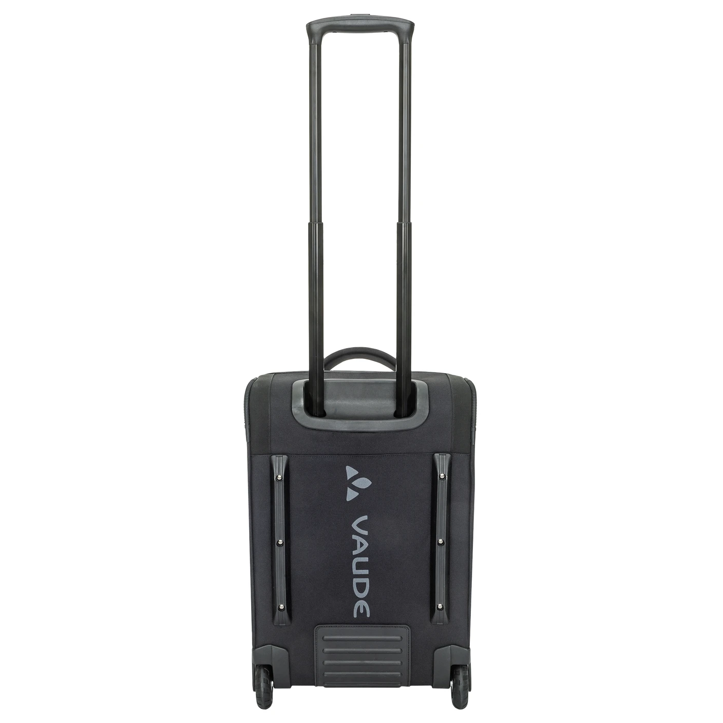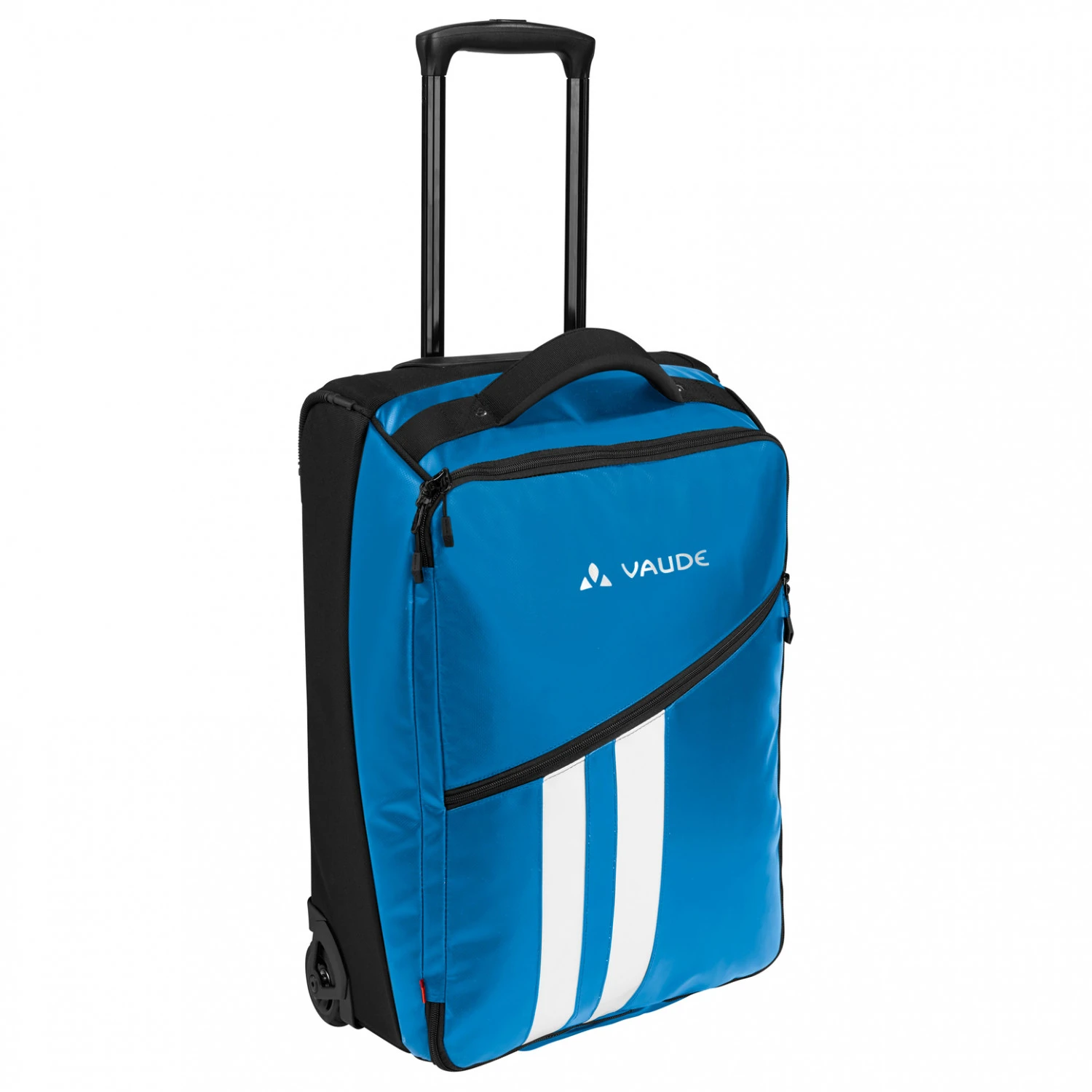 Der handliche Trolley passt sogar ins Handgepäck und ist dank dem robusten und wasserfesten Material auch tauglich für verregnete Reiseziele. Der Rollkoffer hat mehrere praktische Tragegriffe und den obligatorischen, ausziehbaren Griff mit dem sich das gute Stück dank der leichtgängigen Rollen problemlos über holpriges Kopfsteinpflaster ziehen lässt. Das Reissverschlussfach auf der Vorderseite verstaut kleinere Dinge die schnell griffbereit sein sollen. Die Netzinnentasche macht seinen Inhalt auf den ersten Blick sichtbar und der verstärkte Boden trotzt dem ruppigsten Gepäckförderband. Los geht’s mit dem Rotuma 35 von VauDe!