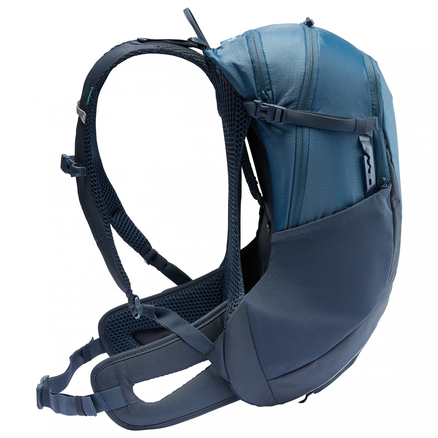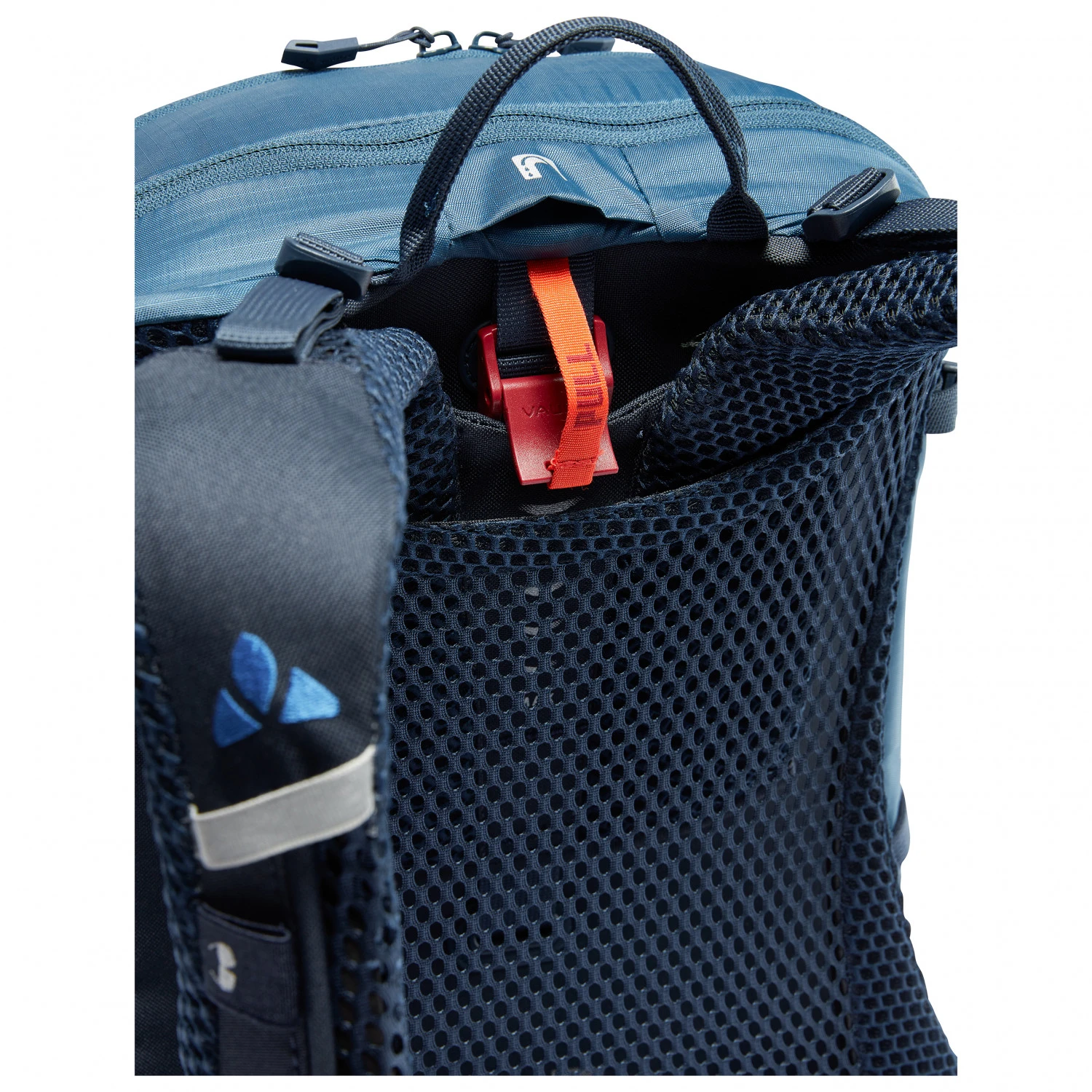 Perfekt bepackt durchs Gelände mit dem Tremalzo 16 von Vaude! Der Bike-Rucksack packt mit seinen 16 Litern Packvolumen alles ein, was es fürs Mountainbiken braucht. Naben dem übersichtlichen Hauptfach gibt es ein zusätzliches Front-Organizerfach, ein separates Fach fürs Trinksystem, zwei seitliche Mesh-Taschen eine Schlüsselhalterung, ein Pumpenhalter, eine Befestigung fürs Rücklicht und eine Helmhalterung. Das Schulterträgersystem kann stufenlos in seiner Länge verstellt werden. Ein Brustgurt und ein gepolsterter Hüftgurt mit praktischer Tasche sorgen für eine optimale Verteilung der Traglast. Ein umlaufender Federdrahtrahmen gibt dem Rückenteil die nötige Stabilität während der einstellbare Ventilationsraum für genau die Belüftungsintensität sorgt, die man auch haben möchte. Top!